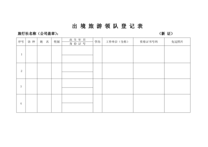 出國(guó)旅游領(lǐng)隊(duì)證申請(qǐng)表樣式